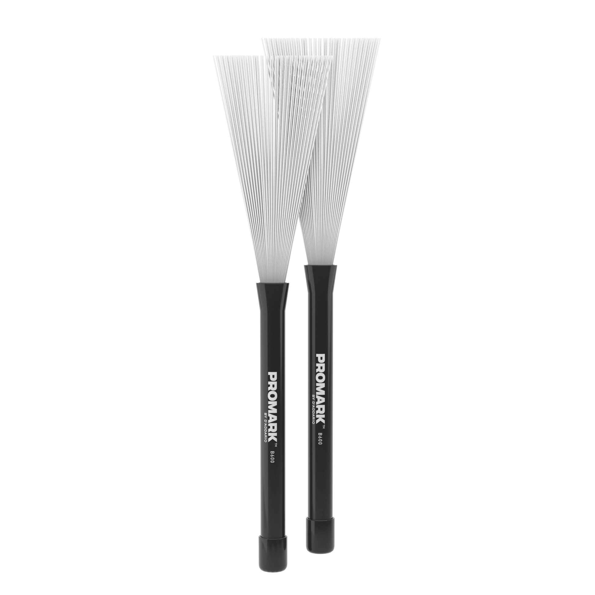 ProMark Nylon Bristle Brushes feature thicker-gauge clear nylon bristles. The bristles conveniently retract into the American made impact resistant plastic handle.
